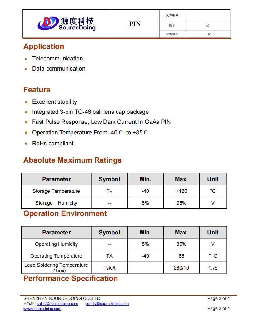 首页 > 模拟 > pd > TO 2.5Gbps 3PIN TO46封装的光电二极管 PD光敏面70微米