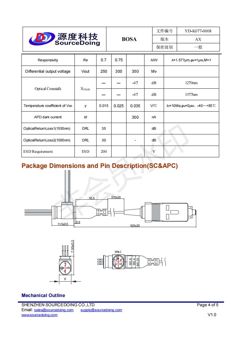 BOSA尾纤 10G-XGSPON ONU BOSA-SC/APC-2757-66-APD-625-IT